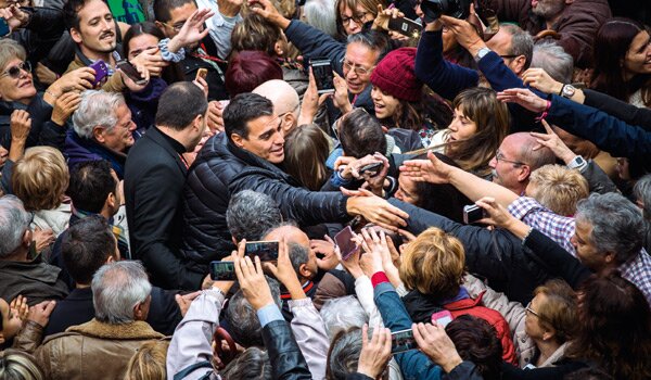 Pese a todo no se rinde. Rodeado de un reducidísimo equipo de fieles, el exsecretario general prepara ya poco a poco la campaña para volver a subir la montaña de la que hace solo tres meses le sacaron a patadas. Lo hace como empezó, sin apenas medios, pagando de su bolsillo los gastos que implica y aferrado (cuando es posible por el tipo de trayecto) al mismo coche con el que en 2014 recorrió España. Sus colaboradores han ideado una campaña low cost que les permita mantener el ritmo de los cuatro meses y medio que quedan hasta la votación. Todos colaboran. Cada uno del equipo más cercano a Sánchez sufraga sus propios billetes o el coste de la gasolina. Si no es posible volver a Madrid en el mismo día, también el alojamiento. La infraestructura de los actos, limitada al alquiler del local, algunos cientos de sillas, el escenario y un equipo de sonido, se paga gracias a la colaboración de los militantes más comprometidos. Algunas agrupaciones y plataformas han colocado huchas en las que cada uno pone lo que pueda. “Cajas de resistencia”, las califican desde el equipo de Sánchez para subrayar la épica del candidato, del obrero contra el poder, de David contra Goliat, al fin y al cabo. Precisamente en ello basará su campaña. Sánchez es, según alguno de sus colaboradores, el candidato de la militancia frente al aparato, del voto democrático frente a los “apaños” de los de siempre. El discurso no es gratuito. Sin prácticamente apoyos orgánicos, son conscientes de que todas las opciones de éxito pasan por mantener hipermovilizada a la militancia, por despertar entre los afiliados el espíritu inconformista del socialismo, su “romanticismo”. Por implicarlos, al fin y al cabo, en cada paso de la candidatura.