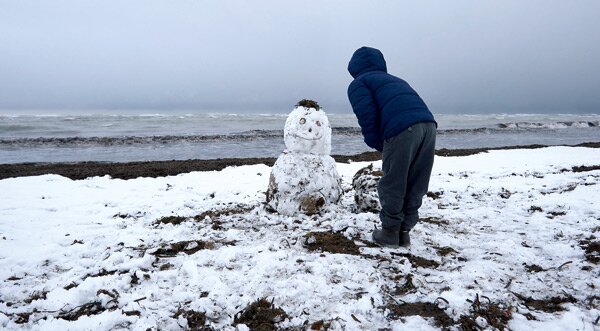 Ese muñeco es una soberana birria y el chaval que lo mira lo sabe muy bien. Lo único notable que tiene, desde el punto de vista de las artes nievemuñequísticas es que la cara se parece extraordinariamente a la de Wilson, la pelota blanca pintada que acompañaba al personaje que interpretaba Tom Hanks en la película Náufrago. Pero al escultor no se le puede pedir más. Probablemente es el primer muñeco de nieve que hace en su vida y hay muchas posibilidades de que sea el último. Porque la última vez que nevó en la playa de Denia fue en 1983. No le vas a pedir al tipo que imite el estilo de Bernini, con tan poca experiencia.