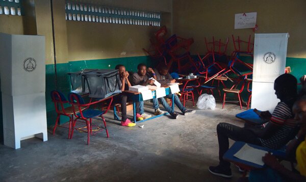 Es una de las frases más tópicas, que se repite inexorablemente cada vez que nos llaman a las urnas para lo que sea: la votación es la fiesta de la democracia. Teniendo en cuenta que los chicos de la foto son haitianos, pueblo acostumbrado a vencer todo género de dificultades (incluidas las catástrofes naturales) a base de ritmo y buen humor... Pues hombre, es para pensar que ahí los del colegio electoral han vivido fiestas un poco más animadas. Es lo que pasa cuando las elecciones se convocan, se desconvocan, se repiten, se anulan y se vuelven a convocar veinte veces, como ha pasado en Haití. Y nadie sabe si ese procès sirve para algo. Pues hombre, pues claro, pues te aburres.