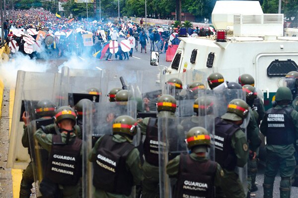 Esos que allí al fondo se ven no son templarios, ni caballeros ingleses, aunque los escudos que se han hecho en casa lleven sus símbolos. Son venezolanos más que hartos de que un histrión, un tipo sin personalidad que no sabe hablar si no es imitando (mal) a otro que murió, esté poniendo al país al borde mismo de una guerra civil de consecuencias temibles. El botarate de Maduro se ha tomado la existencia de la oposición como una afrenta personal y está decidido a aplastar la democracia con tal de ganar en una guerra que, de momento, solo existe en su imaginación. Trata de redactar una nueva Constitución hecha a su medida: es el signo de todos los tiranos. Su locura está costando muchas vidas. Puede que cueste muchas más.