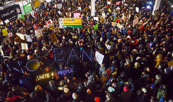 En este momento hay una gran indignación con la mayoría de lo que Trump está haciendo, y también por a quién se lo está encargando (sobre todo en relación con su asesor, Steve Bannon). Protestas en los aeropuertos. Quejas sobre la legalidad de las medidas. Demócratas prometiendo medidas de castigo. Republicanos que temen hablar demasiado sobre algo.